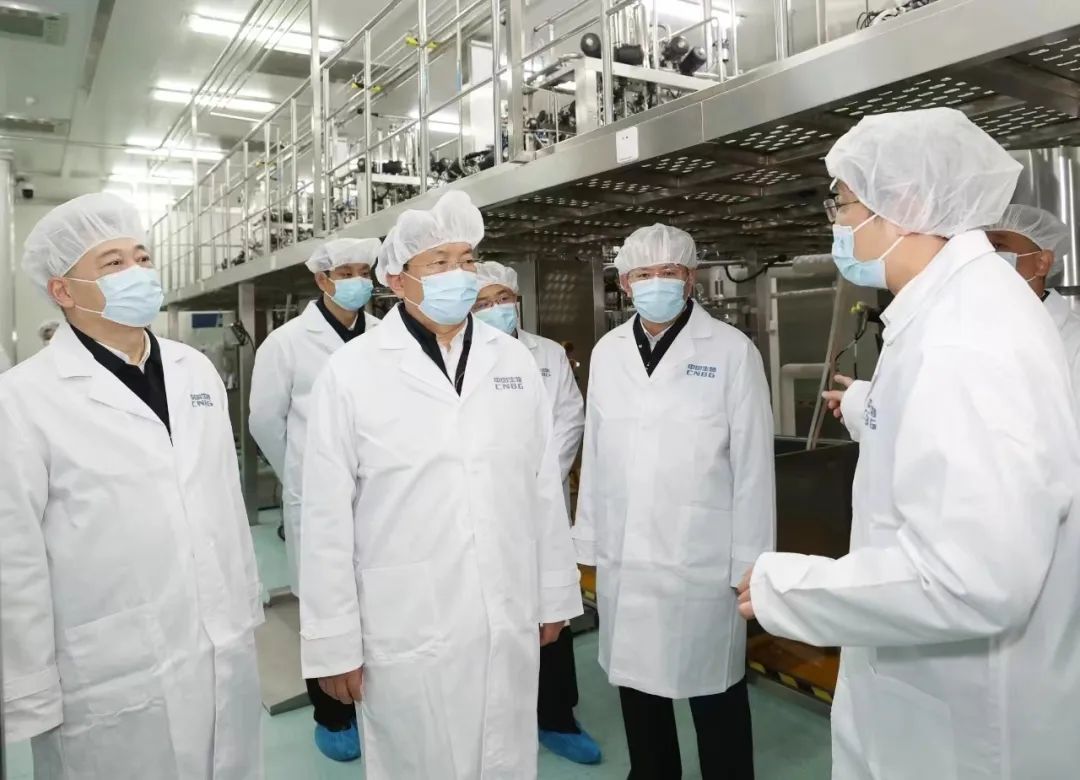 王忠林省長(zhǎng)深入抗新冠病毒藥物生產(chǎn)車間實(shí)地了解企業(yè)科研攻關(guān)及產(chǎn)業(yè)化相關(guān)情況。
