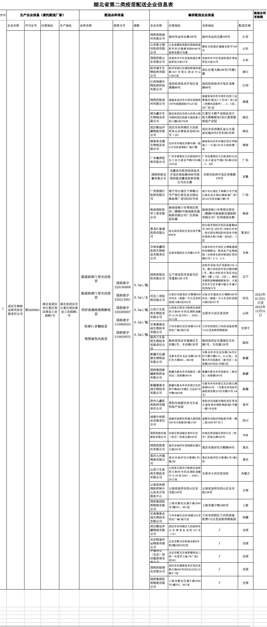 湖北省第二類疫苗配送企業(yè)信息表